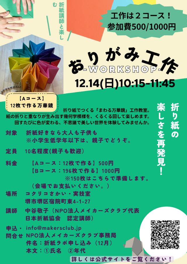 - 対象:折り紙好きなら大人も子供も(小学生低学年以下は親子でどうぞ)