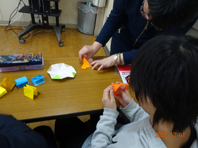 2025年12月1日(月)、大阪市立長谷川小学校にて、大阪市総合教育センターとの連携により、メイカーズクラブによる折り紙体験教室を実施しました。対象は小学校1~4年生7名、5・6年生6名の計13名です。