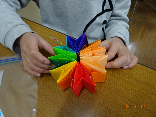 ユニット折り紙で「万華鏡」づくり:5・6年生(6名)