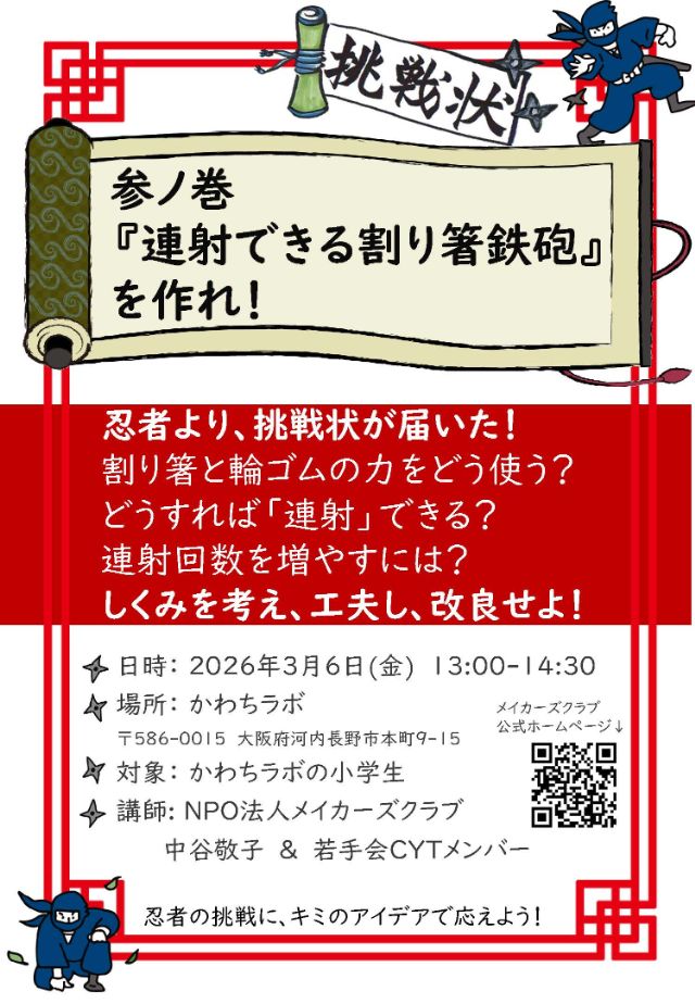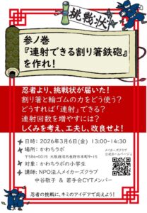 【活動報告】忍者からの挑戦状!「連射できる割りばし鉄砲」を作れ